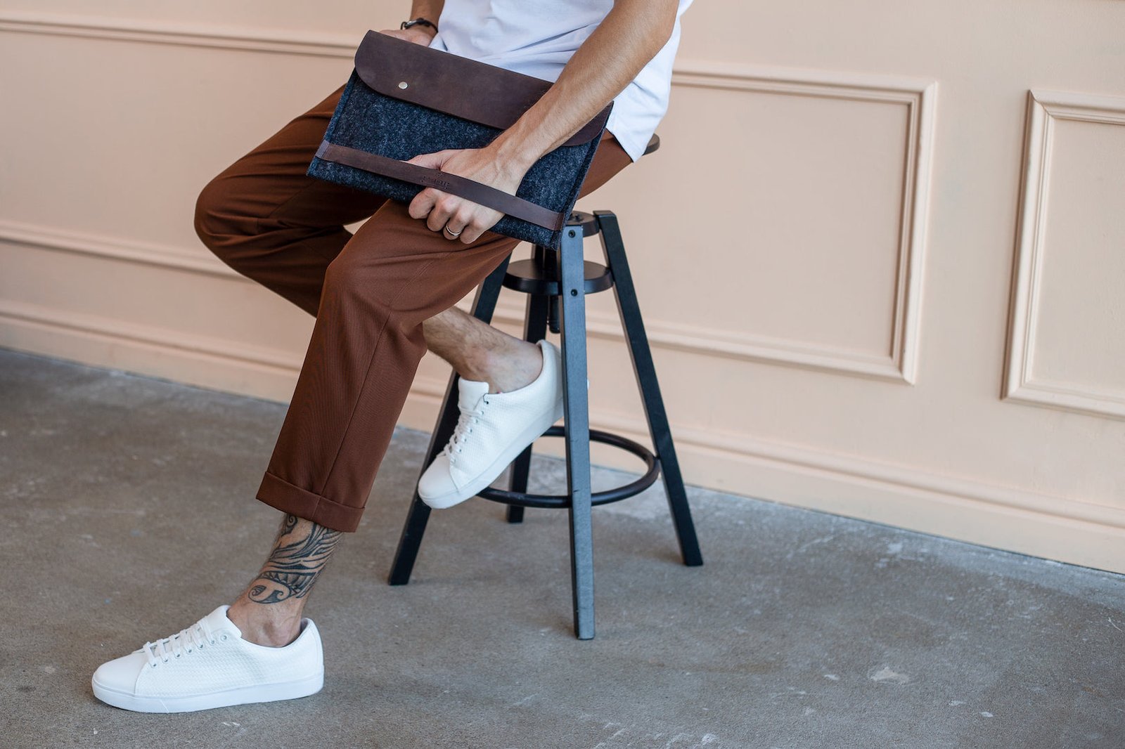The CARRY MORE laptop case, made from natural merino wool felt and full grain Crazy Horse leather, will protect your computer from impacts, prevent scratches, and help you take it along to a long-awaited meeting. It’s also equipped with an additional compartment for your headphones, smartphone or a few loose bills.